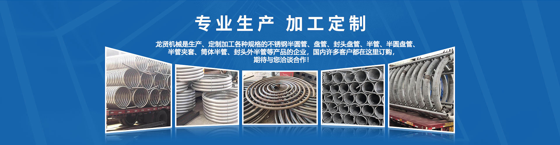 無錫龍賢機械制造有限公司生產(chǎn): 半管 半圓管 盤管 封頭盤管 外半管 半管夾套 封頭外半管 不銹鋼半圓管 304不銹鋼盤管等